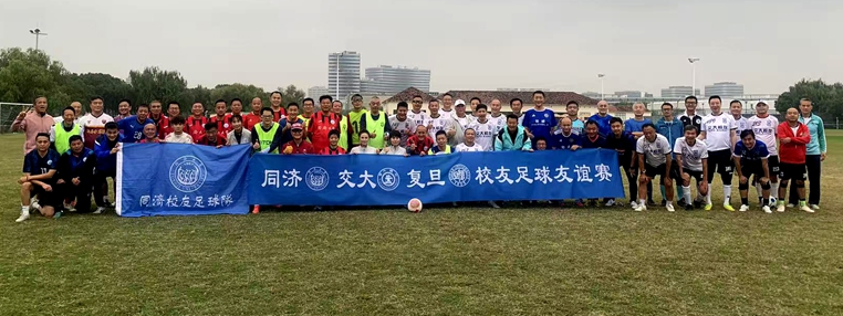 最近的这个周末,由上海交大校友足协副秘书长陈征峰牵头组织,“首届百年985高校魔都三角赛”在浦东森兰无界体育公园举行,参赛三方是以上海同济、复旦、交大三所高校55岁以上的校友为主,主办方同济大学校友队教练尹强还邀请了中国女足前国脚高宏霞等明星球员同场竞技,为活动添彩。尤为难得的是,今年已经76岁高龄的交大体育教授、新中国第一部足球教育片《足球》中的少年代表赵文杰,身体非常硬朗,在场上不知疲倦奔跑,展现出的精神风貌和体能令人钦佩不已。